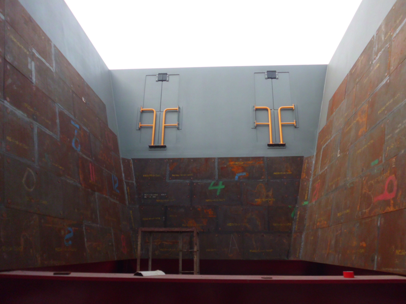 下面的圖片展示了39122WESTERN TURNER BROCKMAN PROJECT.料斗。這個項(xiàng)目料斗有兩個上部和兩個底部部分,總重量是385噸。箱體采用 Davies無螺母緊固系統(tǒng)。